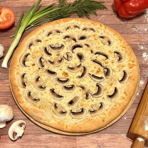 белый соус, грибы шампиньоны, сыр моцарелла, зелень (25 см)